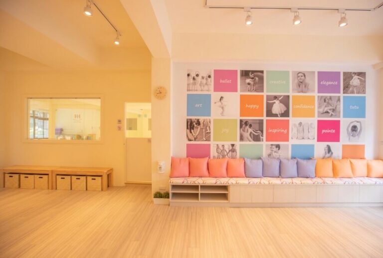 舞動世界不僅要求專業的教學師資,更致力於提供優良的舞蹈教學教室。整體教室環境明亮,簡潔大方的接待櫃台、舒適的家長等候區、提供飲水機及更衣空間,是我們對教室環境高品質的堅持。授課教室備有豐富專業的舞蹈教學教具,教室內部寬敞安全,在燈光、空調、音響,處處皆能看到對孩子的用心。