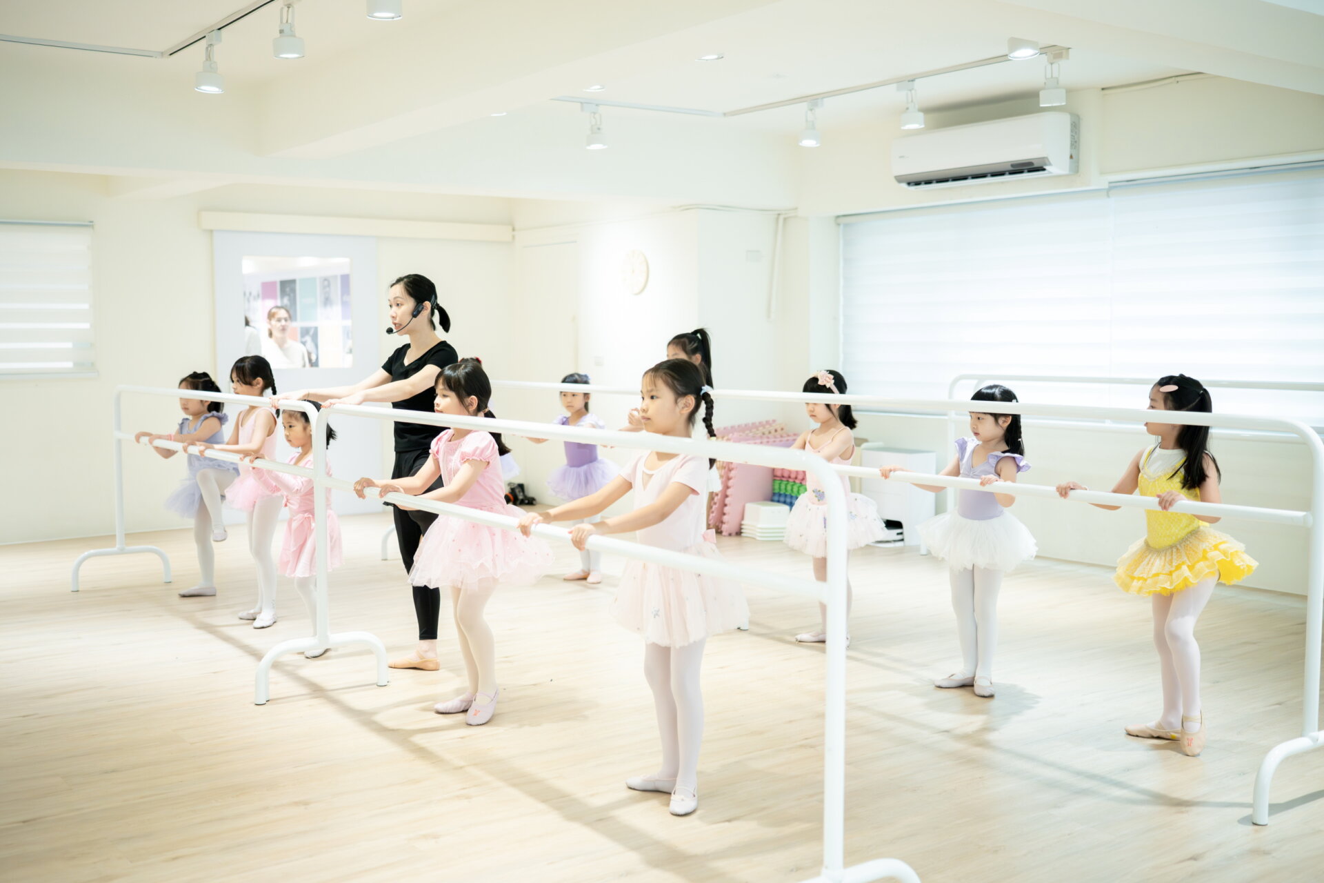 【一般兒童芭蕾課程】 為了讓孩子練習獨立上課,不需家長陪同。您可以透過大廳的觀課窗看到孩子上課的情況。若孩子初期較緊張,我們不強迫入室,建議先在窗外觀察,等孩子準備好後再進教室上課。